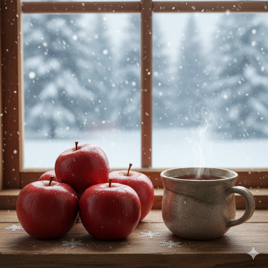 - 작용 원리: 사과 껍질에 많은 퀘르세틴은 폐 기능을 보호하고 미세먼지 등 외부 오염물질로부터 기관지를 방어하는 항염 작용을 합니다. 사과의 사과산과 구연산 같은 유기산은 에너지 대사를 촉진하여 겨울철 무기력증을 방기 합니다.